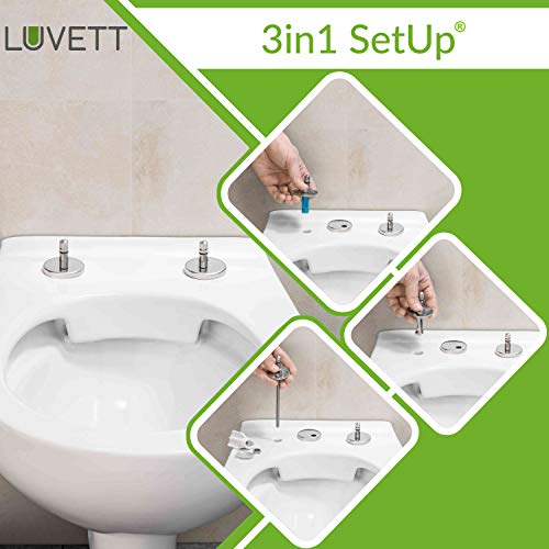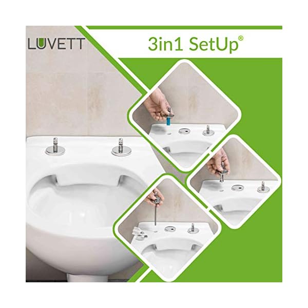 WC-Deckel Beige inklusive 3 Montagelösungen aus Edelstahl (OneforAll – 3in1-Befestigung): Spreizzapfen (von oben), Klappdübel (von oben) und Einsteckmutter (von unten) – Alles wird mitgeliefert und ermöglicht eine einfache Montage.