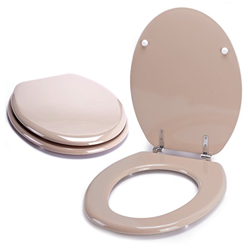 Toilettensitz aus hochwertiger MDF mit einer besonders pflegeleichten Oberfläche. Dieser WC-Sitz in der Farbe Beige paßt auf jede marktübliche Toilette. Rutschfeste Stopper an der Sitzunterkante und am Deckel geben Ihnen einen guten Halt. Abmessungen: (LxBxH): 43 x 37 x 5 cm, Gewicht: 3,02 kg.